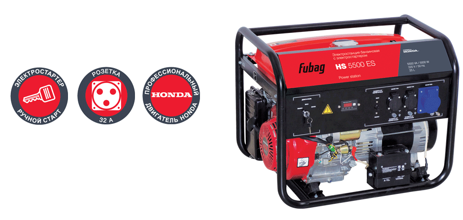Наклонный металлический козырек над приборной панелью обеспечивает дополнительную защиту элементов панели от неблагоприятных погодных условий.Бензиновый генератор FUBAG HS 5500 ES в продаже по цене 0 руб. в Интернет-магазине Проф-инструмент с доставкой в Саранске и Мордовии. Звоните по телефону +8 (800) 302-10-51.