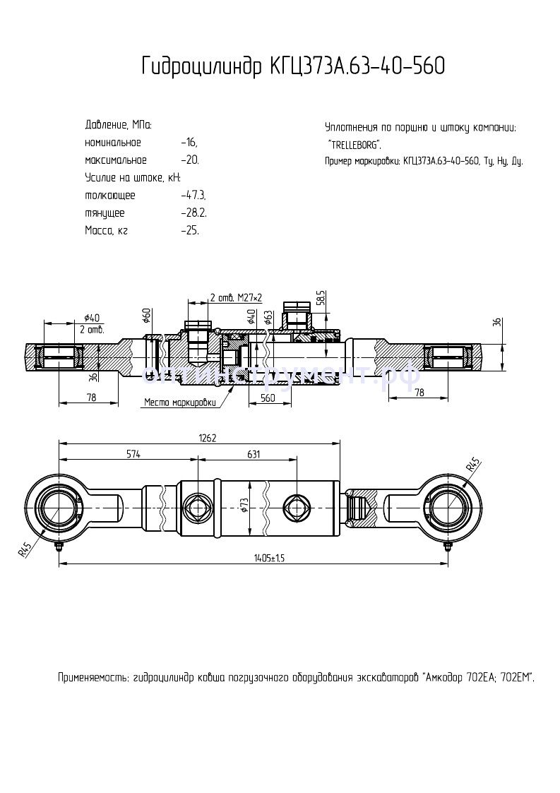 Гидроцилиндр ковша передней навески экскаваторов КГЦ 373А.63-40-560 в продаже по цене 13 440 руб. в Интернет-магазине Проф-инструмент с доставкой в Саранске и Мордовии. Звоните по телефону +8 (800) 302-10-51.