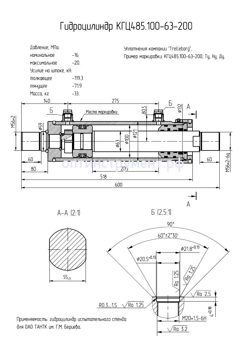 Гидроцилиндр КГЦ 485.100-63-200 в продаже по цене 17 040 руб. в Интернет-магазине Проф-инструмент с доставкой в Саранске и Мордовии. Звоните по телефону +8 (800) 302-10-51.