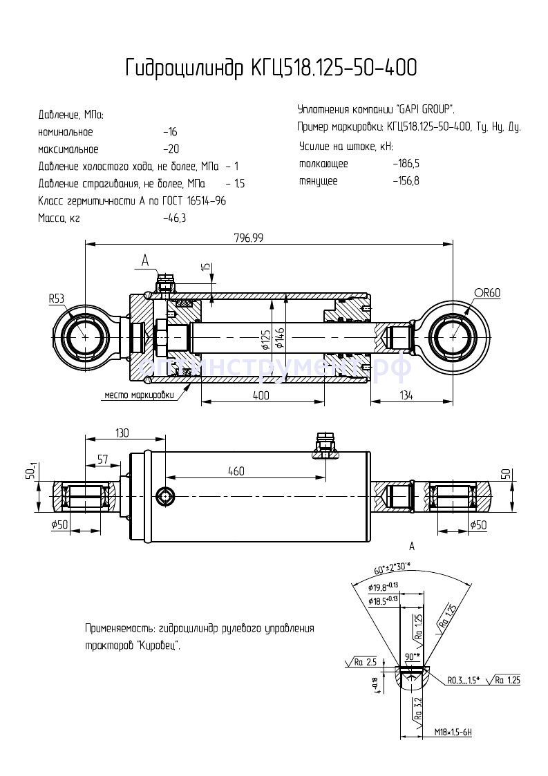 Гидроцилиндр КГЦ 518.125-50-400 в продаже по цене 19 485 руб. в Интернет-магазине Проф-инструмент с доставкой в Саранске и Мордовии. Звоните по телефону +8 (800) 302-10-51.