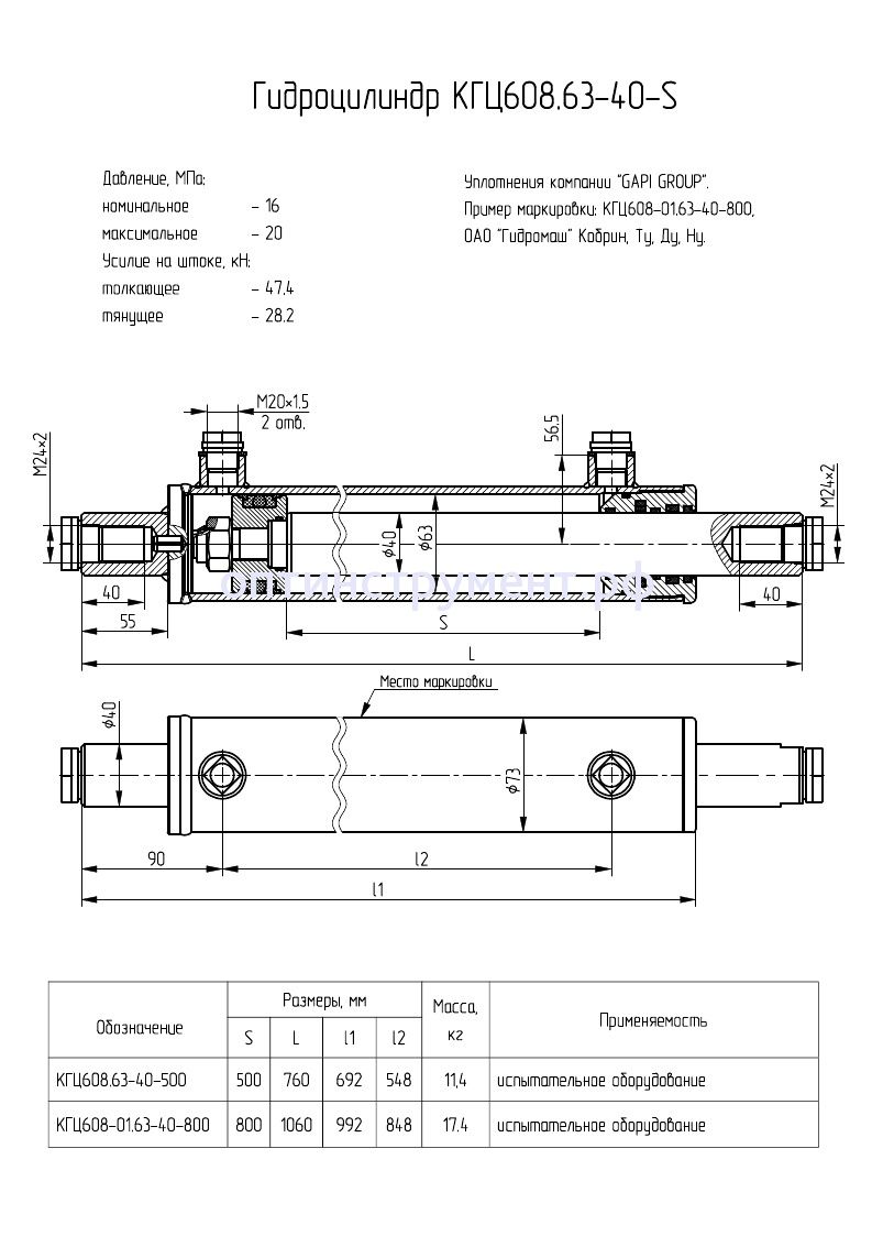 Гидроцилиндр испытательного оборудования КГЦ 608-01.63-40-800 в продаже по цене 11 250 руб. в Интернет-магазине Проф-инструмент с доставкой в Саранске и Мордовии. Звоните по телефону +8 (800) 302-10-51.