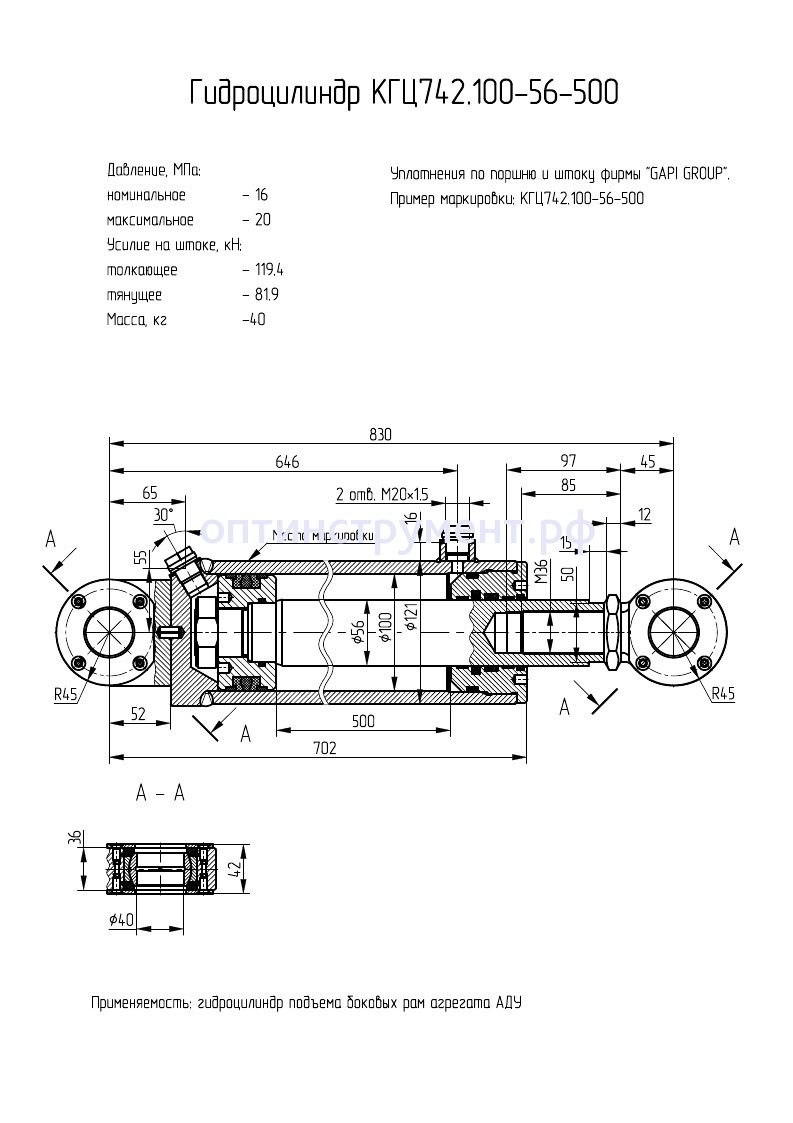 Гидроцилиндр КГЦ 742.100-56-500 в продаже по цене 20 790 руб. в Интернет-магазине Проф-инструмент с доставкой в Саранске и Мордовии. Звоните по телефону +8 (800) 302-10-51.