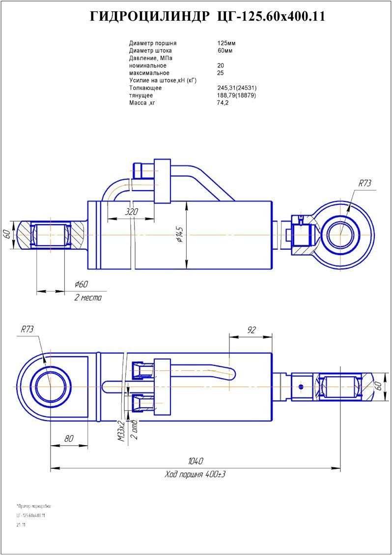 Гидроцилиндр ЦГ-125.60х400.11 в продаже по цене 38 351 руб. в Интернет-магазине Проф-инструмент с доставкой в Саранске и Мордовии. Звоните по телефону +8 (800) 302-10-51.