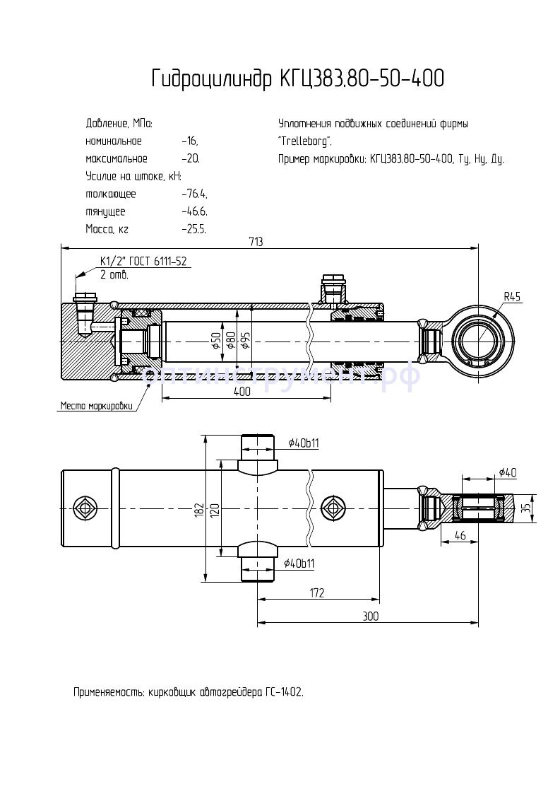 Гидроцилиндр кирковщика автогрейдера "ГС-1402" КГЦ 383.80-50-400 в продаже по цене 14 400 руб. в Интернет-магазине Проф-инструмент с доставкой в Саранске и Мордовии. Звоните по телефону +8 (800) 302-10-51.