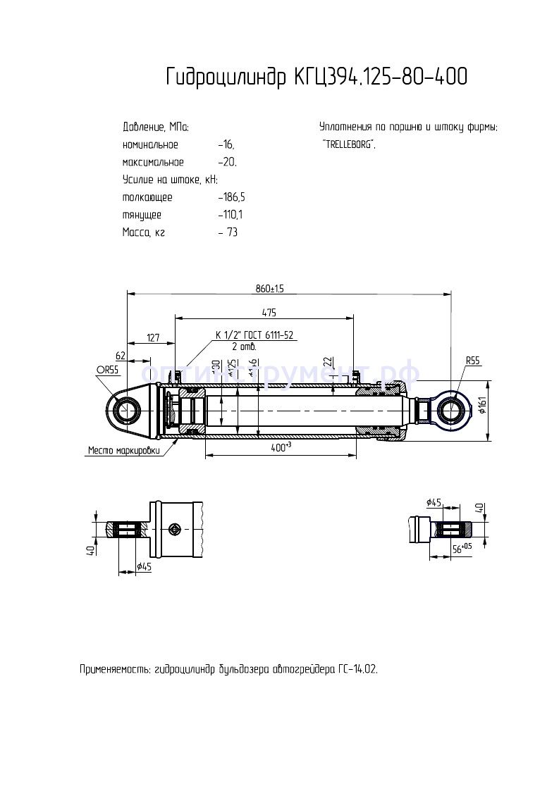 Гидроцилиндр бульдозера автогрейдера "ГС-14.02" КГЦ 394.125-80-400 в продаже по цене 27 960 руб. в Интернет-магазине Проф-инструмент с доставкой в Саранске и Мордовии. Звоните по телефону +8 (800) 302-10-51.