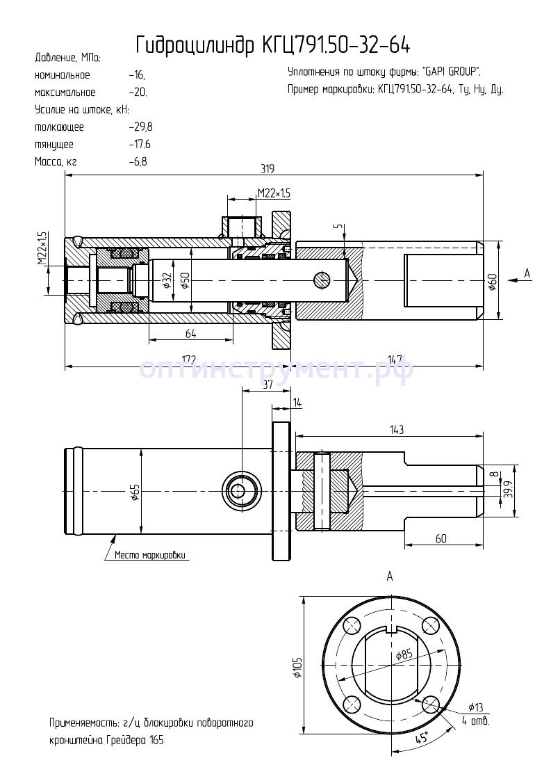 Гидроцилиндр блокировки поворотного кронштейна (автогрейдера 165) КГЦ 791.50-32-64 в продаже по цене 9 720 руб. в Интернет-магазине Проф-инструмент с доставкой в Саранске и Мордовии. Звоните по телефону +8 (800) 302-10-51.