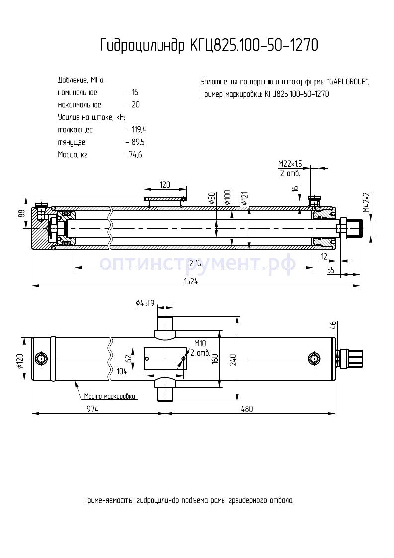 Гидроцилиндр подъема рамы грейдерного отвала КГЦ 825.100-50-1270 в продаже по цене 36 675 руб. в Интернет-магазине Проф-инструмент с доставкой в Саранске и Мордовии. Звоните по телефону +8 (800) 302-10-51.