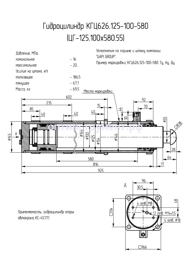 Гидроцилиндр опоры автокрана "КС-45717" КГЦ 626.125-100-580 в продаже по цене 32 880 руб. в Интернет-магазине Проф-инструмент с доставкой в Саранске и Мордовии. Звоните по телефону +8 (800) 302-10-51.