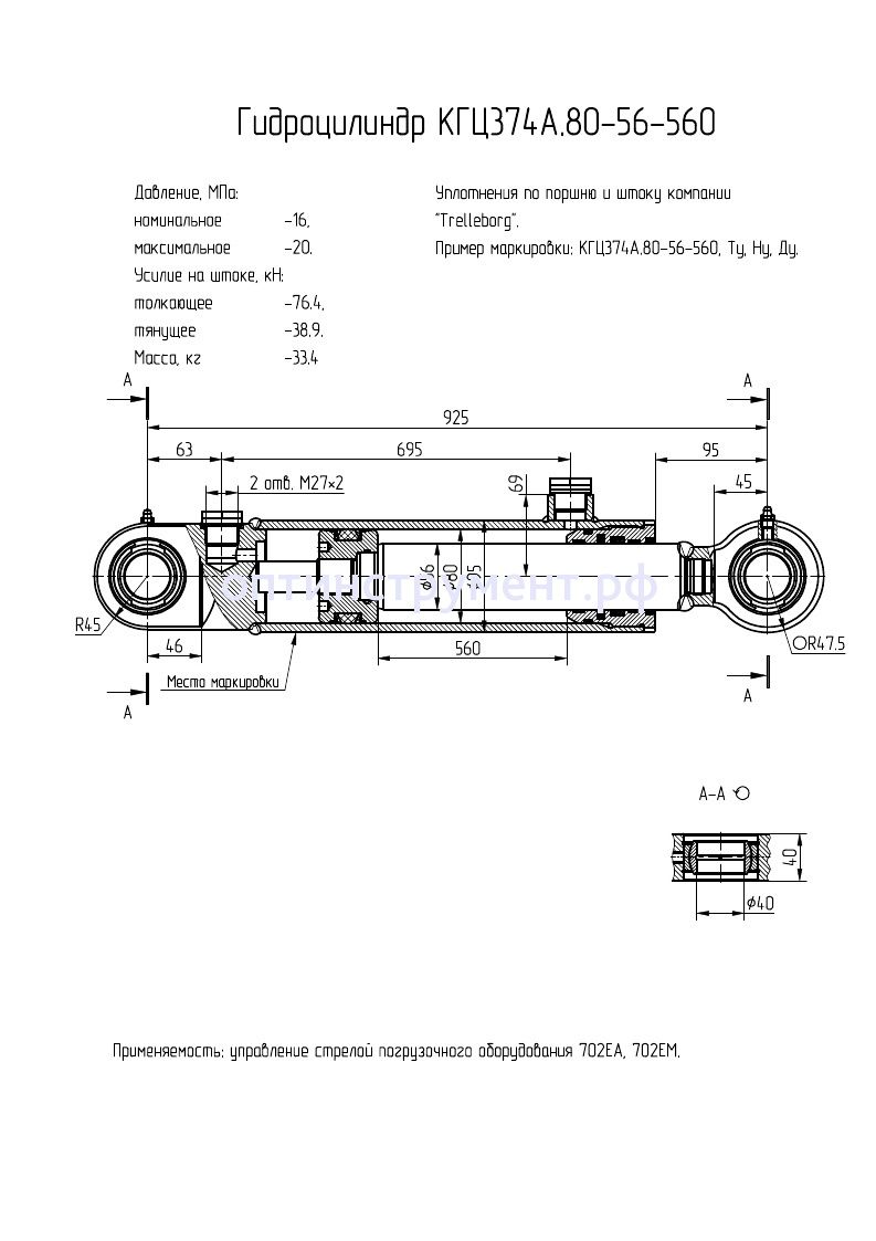 Гидроцилиндр управления стрелой погрузочного оборудования КГЦ 374А.80-56-560 в продаже по цене 16 395 руб. в Интернет-магазине Проф-инструмент с доставкой в Саранске и Мордовии. Звоните по телефону +8 (800) 302-10-51.