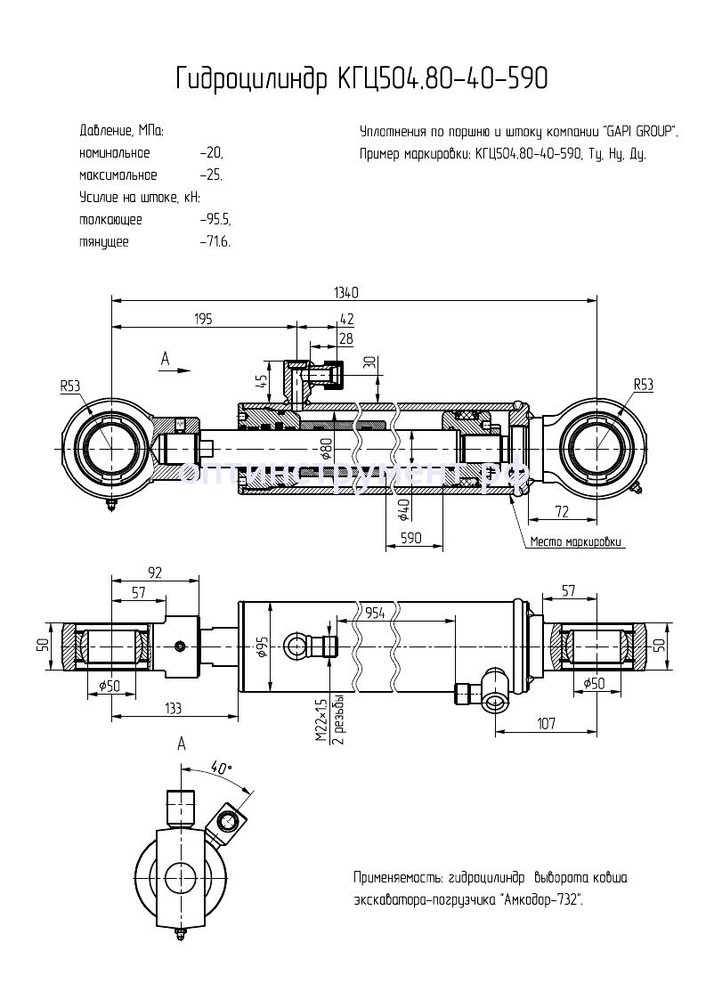 Гидроцилиндр выворота ковша экскаватора-погрузчика "Амкодор-732" КГЦ 504.80-40-590 в продаже по цене 22 425 руб. в Интернет-магазине Проф-инструмент с доставкой в Саранске и Мордовии. Звоните по телефону +8 (800) 302-10-51.