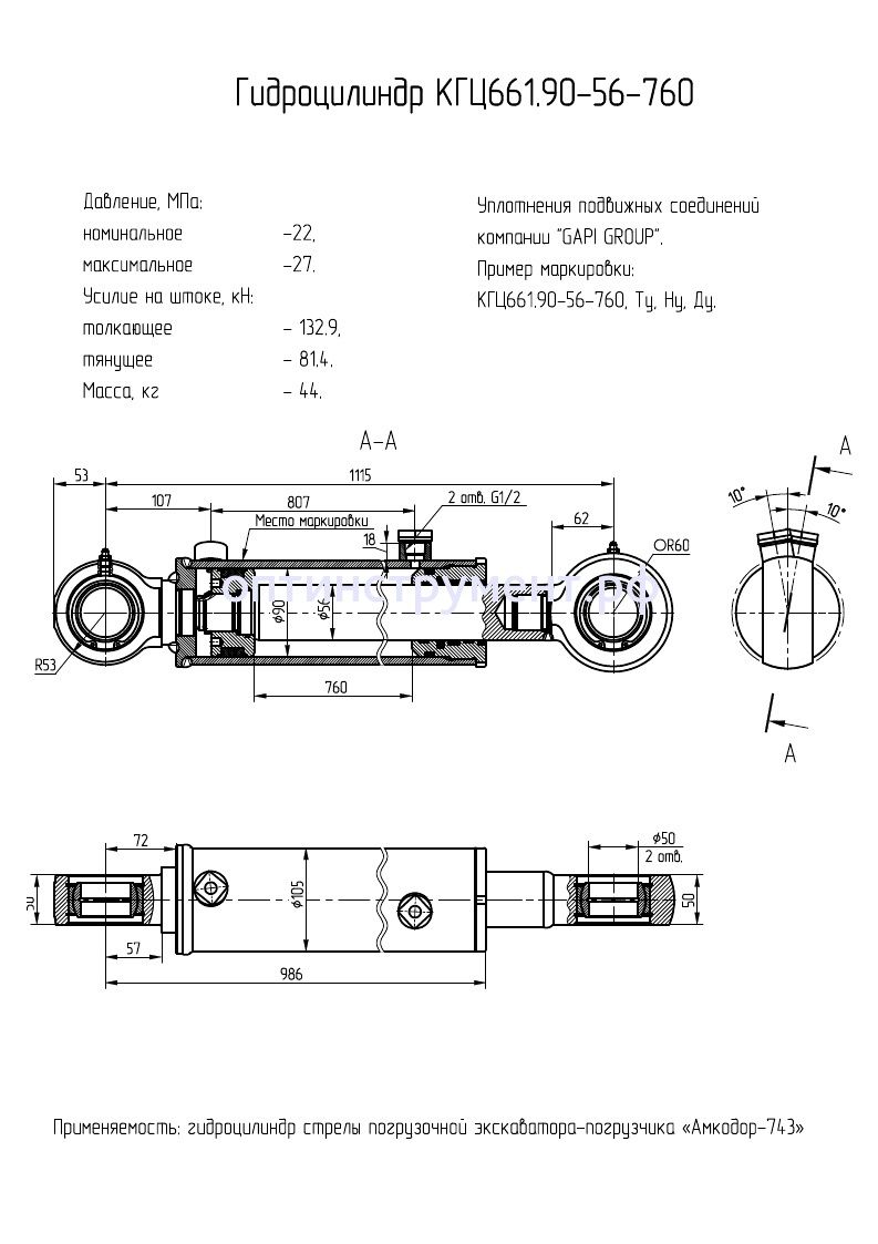 Гидроцилиндр стрелы погрузочной экскаватора-погрузчика «Амкодор-743» КГЦ 661.90-56-760 в продаже по цене 22 440 руб. в Интернет-магазине Проф-инструмент с доставкой в Саранске и Мордовии. Звоните по телефону +8 (800) 302-10-51.