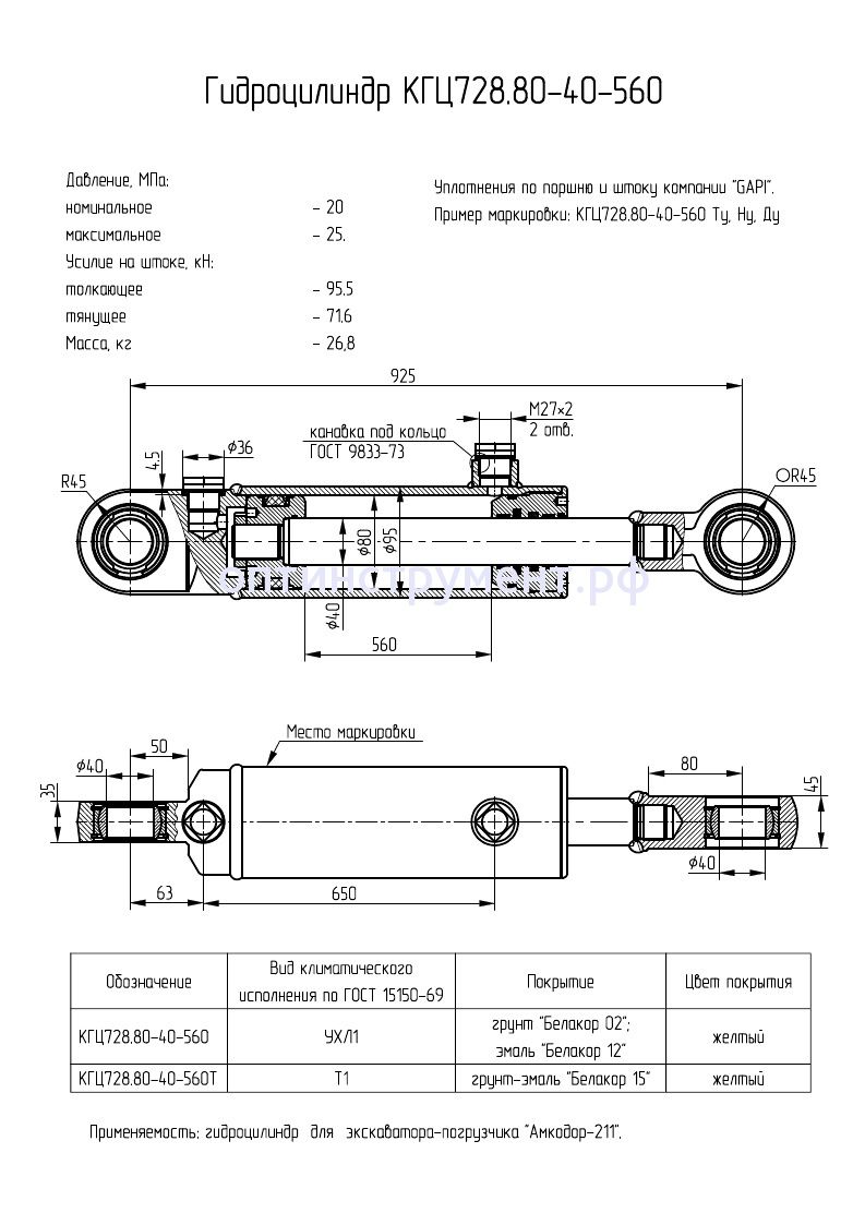 Гидроцилиндр для экскаватора-погрузчика "Амкодор-211" КГЦ 728.80-40-560 в продаже по цене 14 850 руб. в Интернет-магазине Проф-инструмент с доставкой в Саранске и Мордовии. Звоните по телефону +8 (800) 302-10-51.