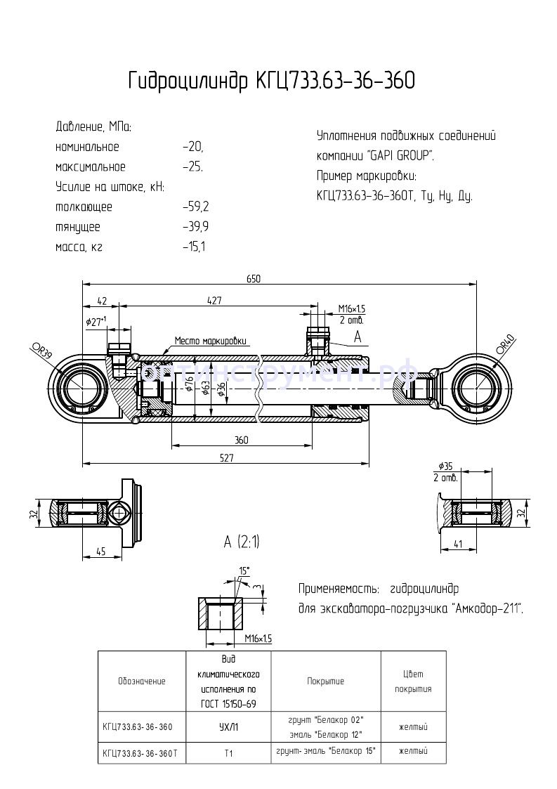 Гидроцилиндр для экскаватора-погрузчика "Амкодор-211" КГЦ 733.63-36-360 в продаже по цене 10 830 руб. в Интернет-магазине Проф-инструмент с доставкой в Саранске и Мордовии. Звоните по телефону +8 (800) 302-10-51.