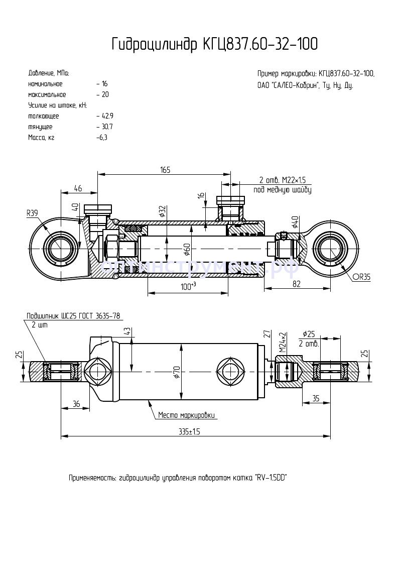 Гидроцилиндр управления поворотом катка "RV-1.5DD" КГЦ 837.60-32-100 в продаже по цене 0 руб. в Интернет-магазине Проф-инструмент с доставкой в Саранске и Мордовии. Звоните по телефону +8 (800) 302-10-51.