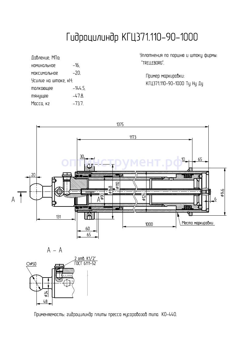 Гидроцилиндр плиты пресса мусоровозов типа "КО-440" КГЦ 371.110-90-1000 в продаже по цене 0 руб. в Интернет-магазине Проф-инструмент с доставкой в Саранске и Мордовии. Звоните по телефону +8 (800) 302-10-51.