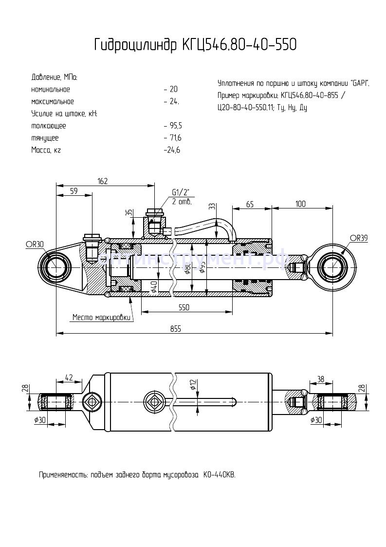 Гидроцилиндр подъема заднего борта мусоровоза КГЦ 546.80-40-550 в продаже по цене 14 070 руб. в Интернет-магазине Проф-инструмент с доставкой в Саранске и Мордовии. Звоните по телефону +8 (800) 302-10-51.