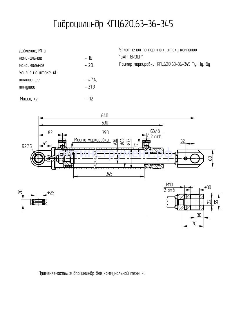 Гидроцилиндр для коммунальной техники КГЦ 620.63-36-345 в продаже по цене 9 990 руб. в Интернет-магазине Проф-инструмент с доставкой в Саранске и Мордовии. Звоните по телефону +8 (800) 302-10-51.