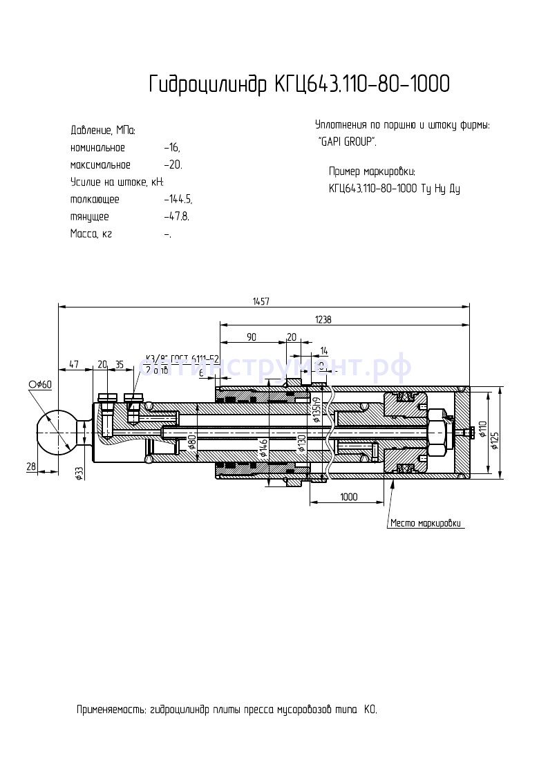 Гидроцилиндр плиты пресса мусоровозов КГЦ 643.110-80-1000 в продаже по цене 33 345 руб. в Интернет-магазине Проф-инструмент с доставкой в Саранске и Мордовии. Звоните по телефону +8 (800) 302-10-51.