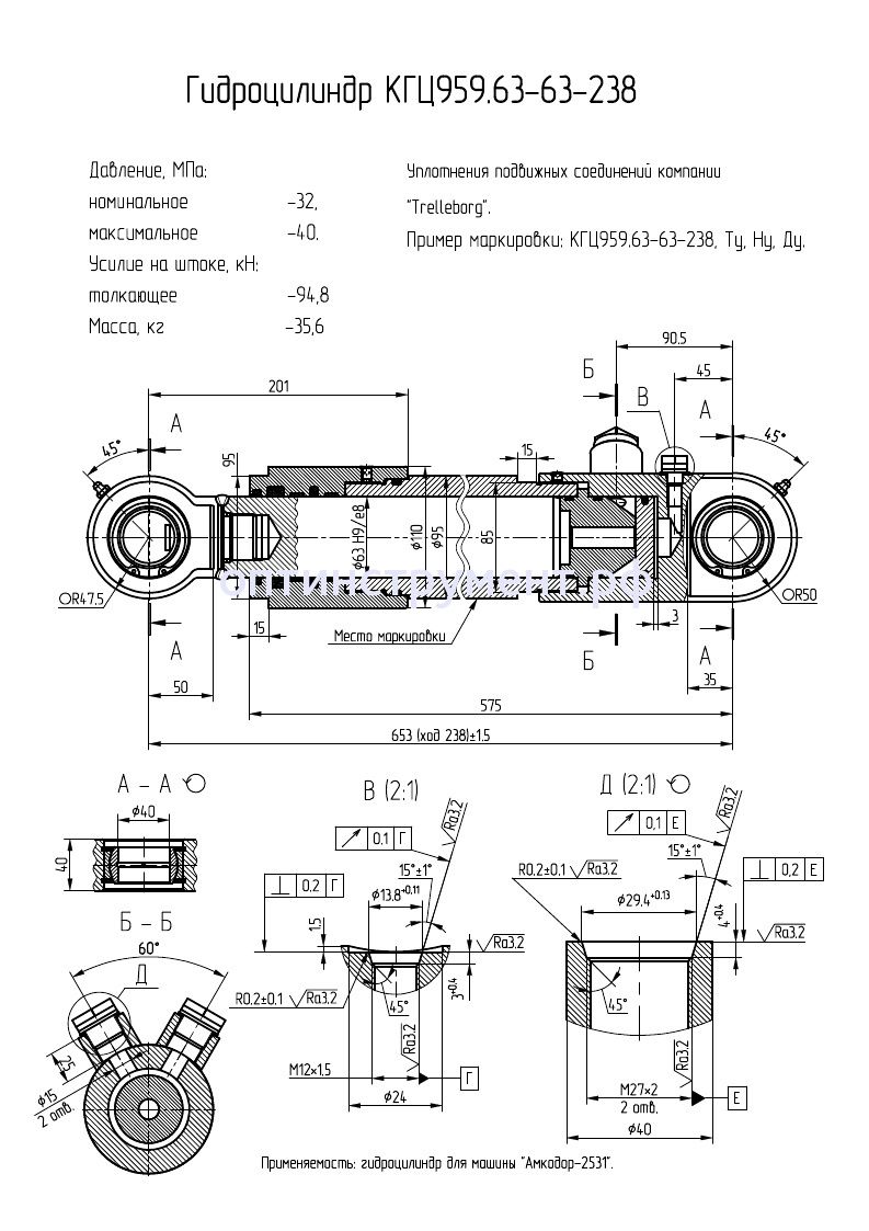 Гидроцилиндр для машины "Амкодор-2531" КГЦ 959.63-63-238 в продаже по цене 0 руб. в Интернет-магазине Проф-инструмент с доставкой в Саранске и Мордовии. Звоните по телефону +8 (800) 302-10-51.