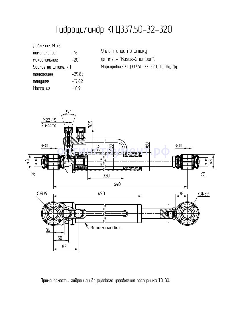 Гидроцилиндр рулевого управления погрузчика "ТО-30" КГЦ 337.50-32-320 в продаже по цене 0 руб. в Интернет-магазине Проф-инструмент с доставкой в Саранске и Мордовии. Звоните по телефону +8 (800) 302-10-51.