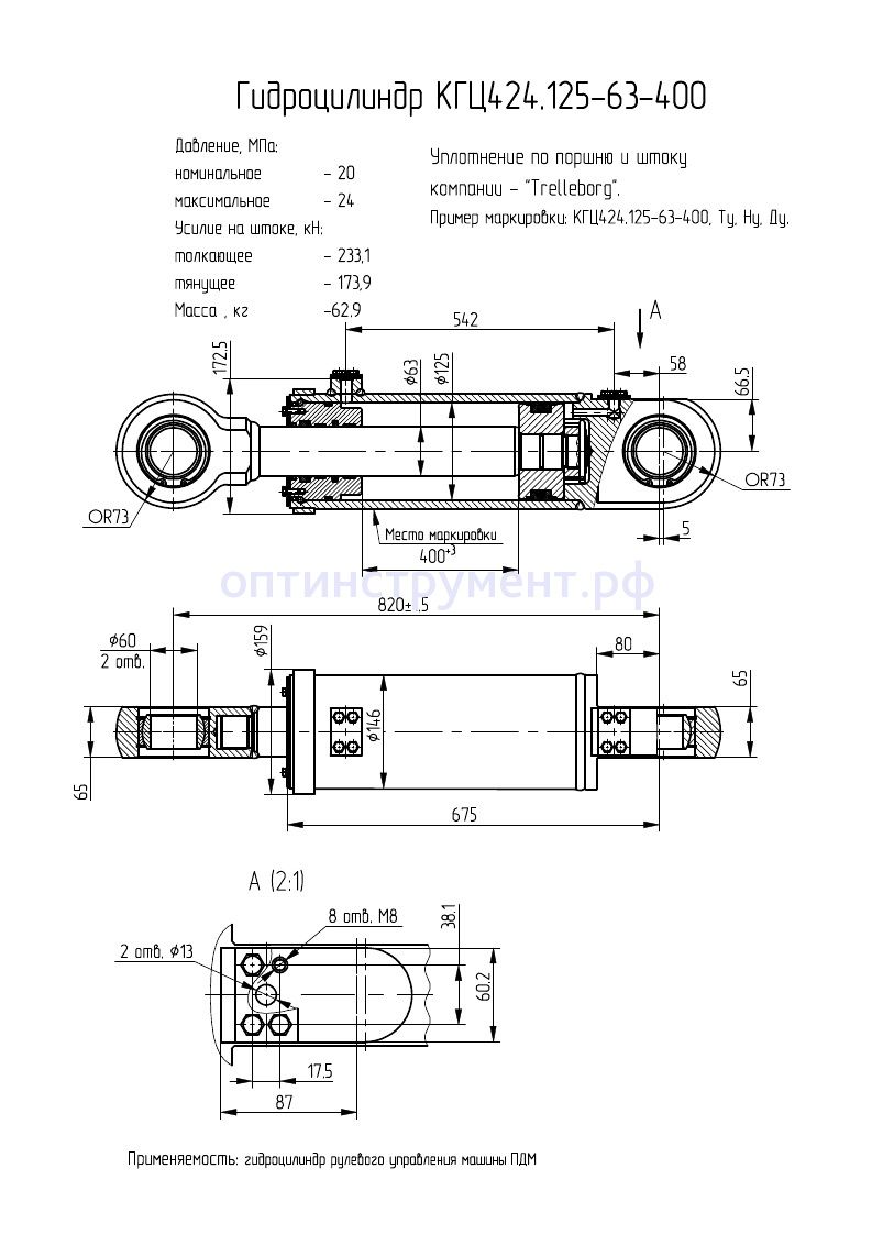 Гидроцилиндр рулевого управления машин "ПДМ" КГЦ 424.125-63-400 в продаже по цене 28 920 руб. в Интернет-магазине Проф-инструмент с доставкой в Саранске и Мордовии. Звоните по телефону +8 (800) 302-10-51.