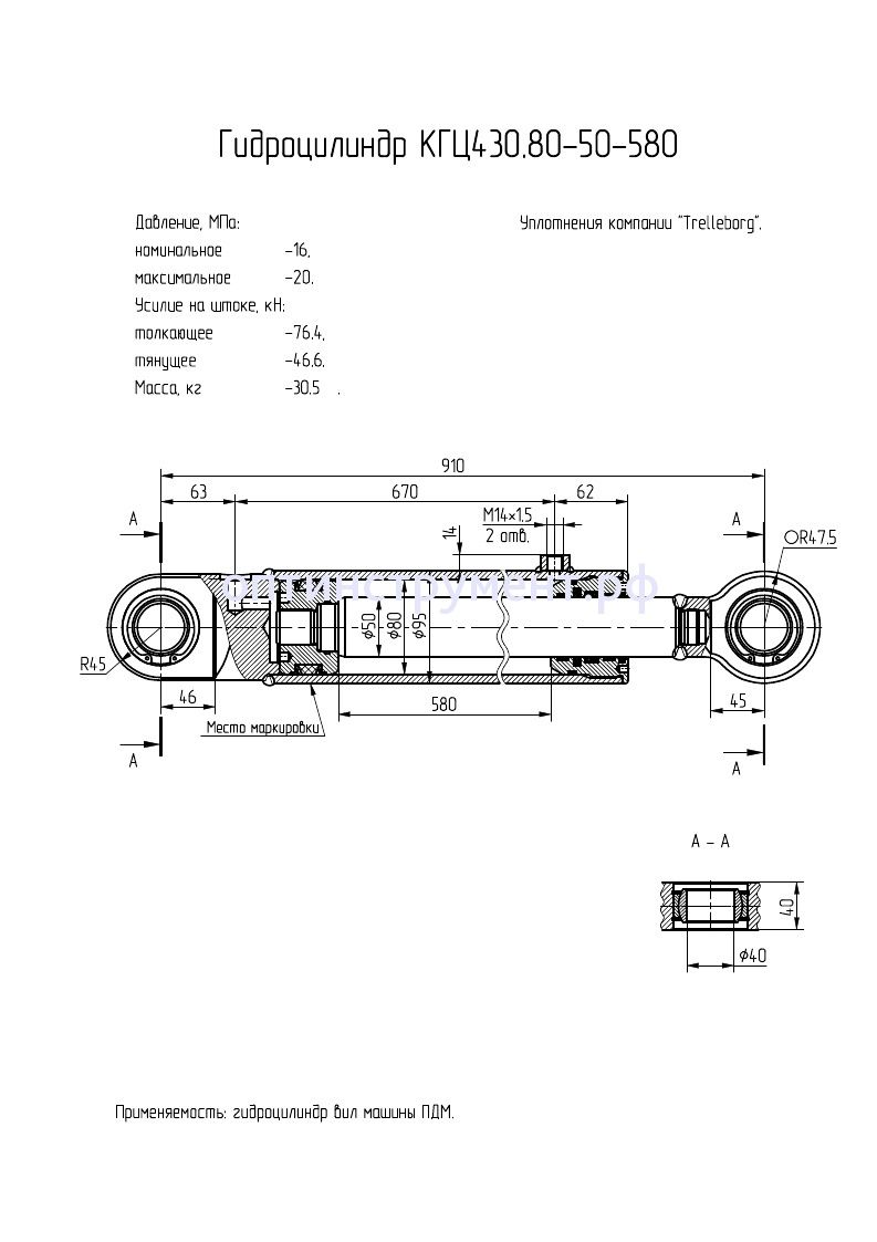 Гидроцилиндр вил машины "ПДМ" КГЦ 430.80-50-580 в продаже по цене 15 540 руб. в Интернет-магазине Проф-инструмент с доставкой в Саранске и Мордовии. Звоните по телефону +8 (800) 302-10-51.