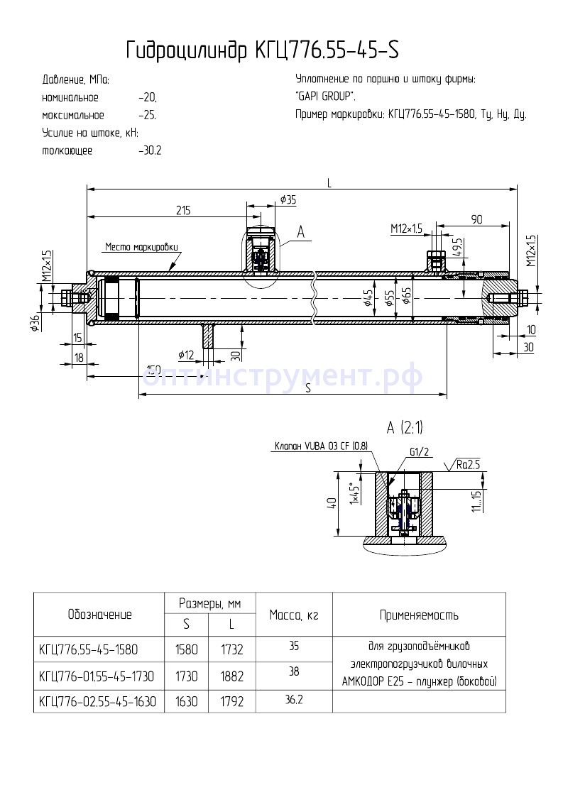 Гидроцилиндр для грузоподъёмников электропогрузчиков вилочных АМКОДОР Е25 - плунжер (боковой) КГЦ 776-01.55-45-1730 в продаже по цене 0 руб. в Интернет-магазине Проф-инструмент с доставкой в Саранске и Мордовии. Звоните по телефону +8 (800) 302-10-51.