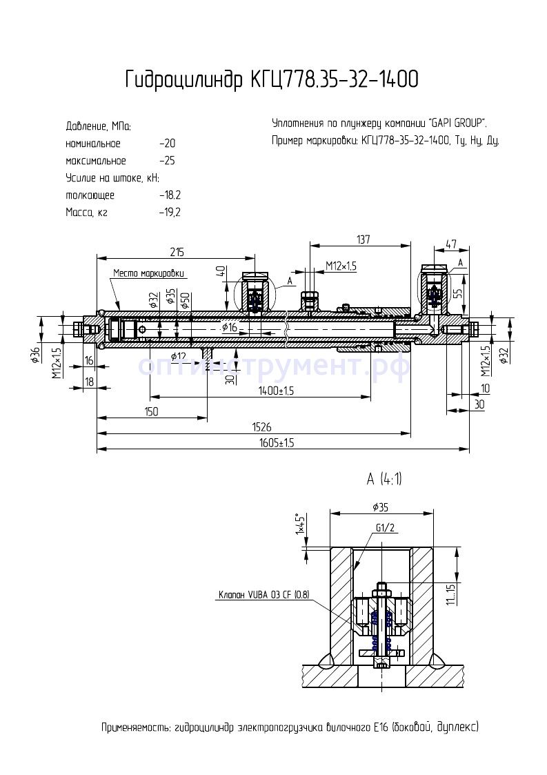 Гидроцилиндр электропогрузчика вилочного Е16 (боковой, дуплекс) КГЦ 778.35-32-1400 в продаже по цене 0 руб. в Интернет-магазине Проф-инструмент с доставкой в Саранске и Мордовии. Звоните по телефону +8 (800) 302-10-51.