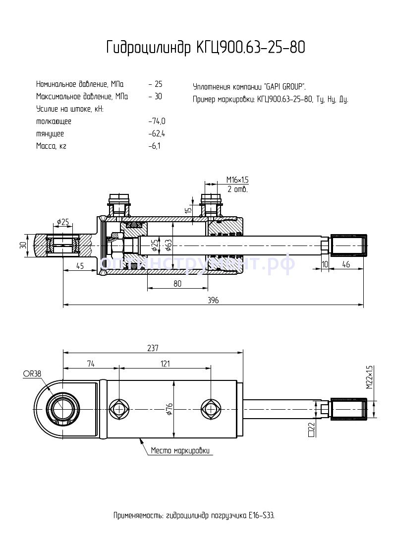 Гидроцилиндр погрузчика "Амкодор E16-S33" КГЦ 900.63-25-80 в продаже по цене 9 360 руб. в Интернет-магазине Проф-инструмент с доставкой в Саранске и Мордовии. Звоните по телефону +8 (800) 302-10-51.