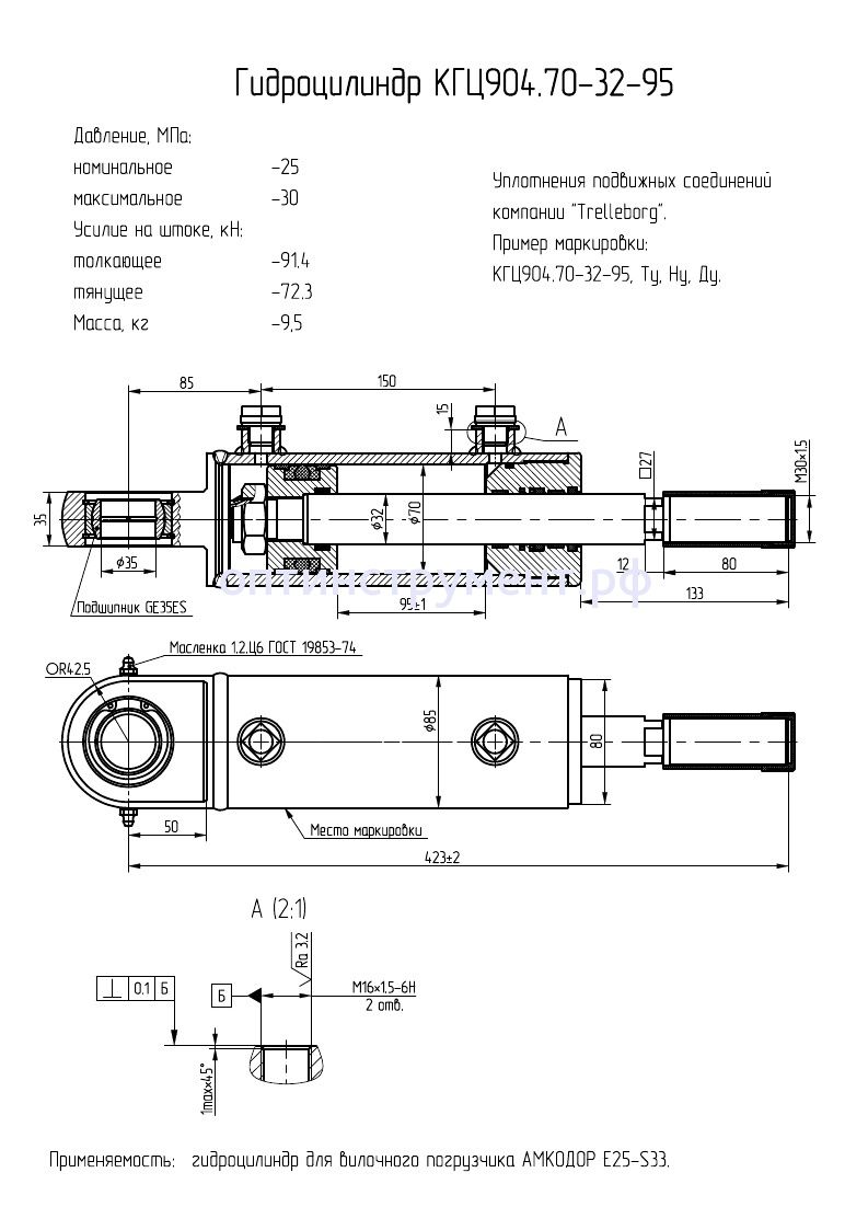 Гидроцилиндр для вилочного погрузчика "Амкодор Е25-S33" КГЦ 904.70-32-95 в продаже по цене 0 руб. в Интернет-магазине Проф-инструмент с доставкой в Саранске и Мордовии. Звоните по телефону +8 (800) 302-10-51.