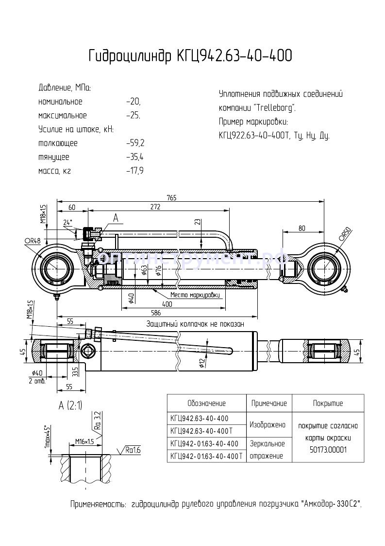 Гидроцилиндр рулевого управления погрузчика КГЦ 942.63-40-400 в продаже по цене 15 270 руб. в Интернет-магазине Проф-инструмент с доставкой в Саранске и Мордовии. Звоните по телефону +8 (800) 302-10-51.