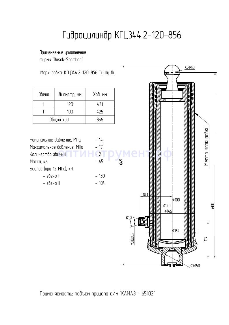 Гидроцилиндр подъема прицепа "КамАЗ-65102" КГЦ 344.2-120-856 в продаже по цене 0 руб. в Интернет-магазине Проф-инструмент с доставкой в Саранске и Мордовии. Звоните по телефону +8 (800) 302-10-51.