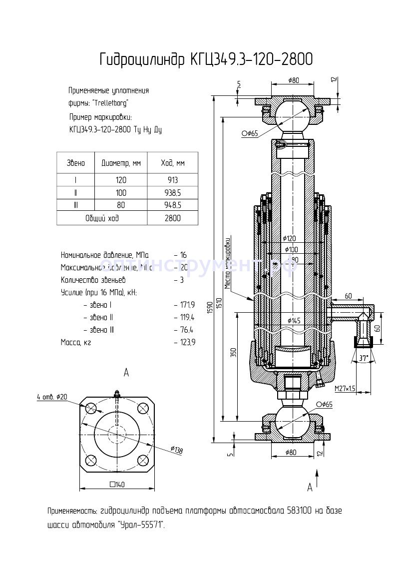 Гидроцилиндр подъема платформы автосамосвала 583100 на базе шасси "Урал-55571" КГЦ 349.3-120-2800 в продаже по цене 0 руб. в Интернет-магазине Проф-инструмент с доставкой в Саранске и Мордовии. Звоните по телефону +8 (800) 302-10-51.