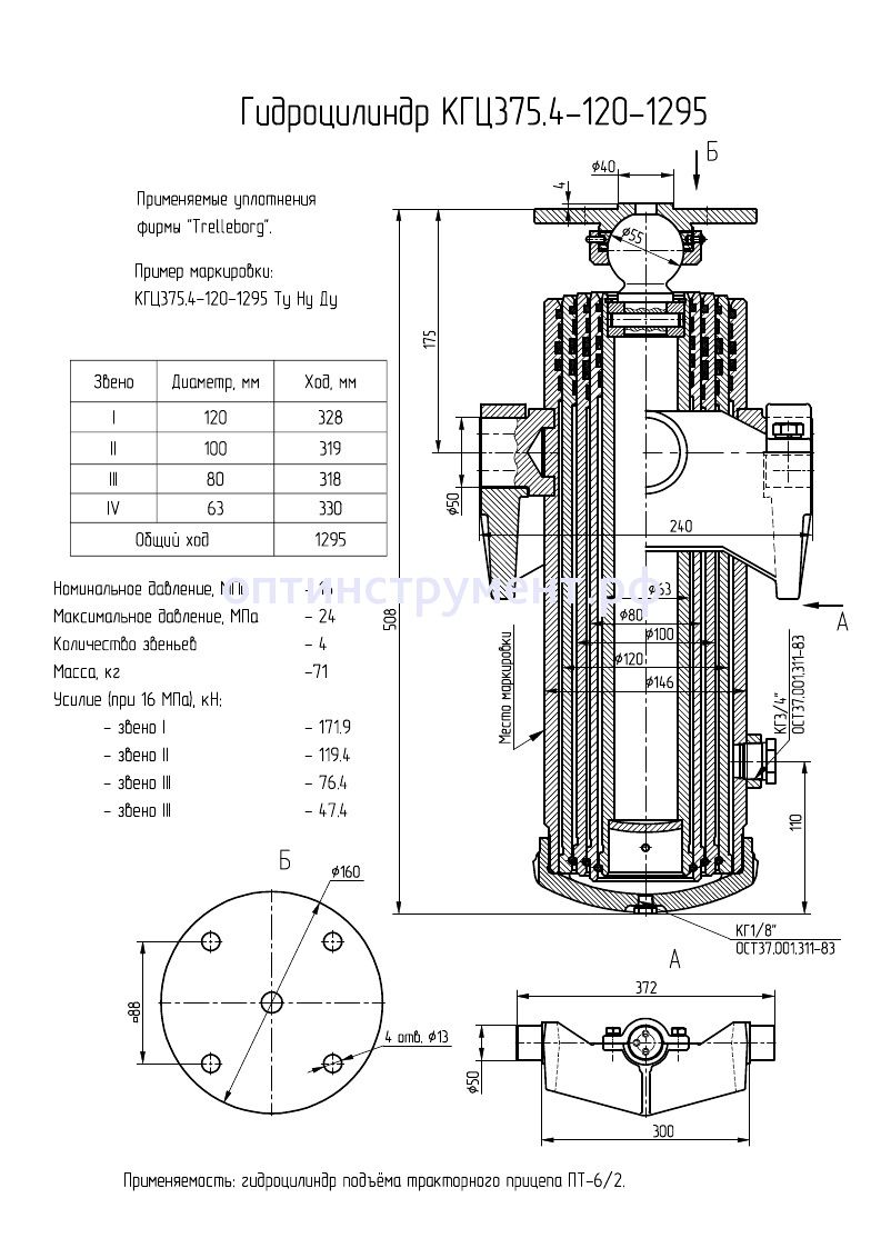 Гидроцилиндр подъёма тракторного прицепа "ПТ-6/2" КГЦ 375.4-120-1295 в продаже по цене 0 руб. в Интернет-магазине Проф-инструмент с доставкой в Саранске и Мордовии. Звоните по телефону +8 (800) 302-10-51.
