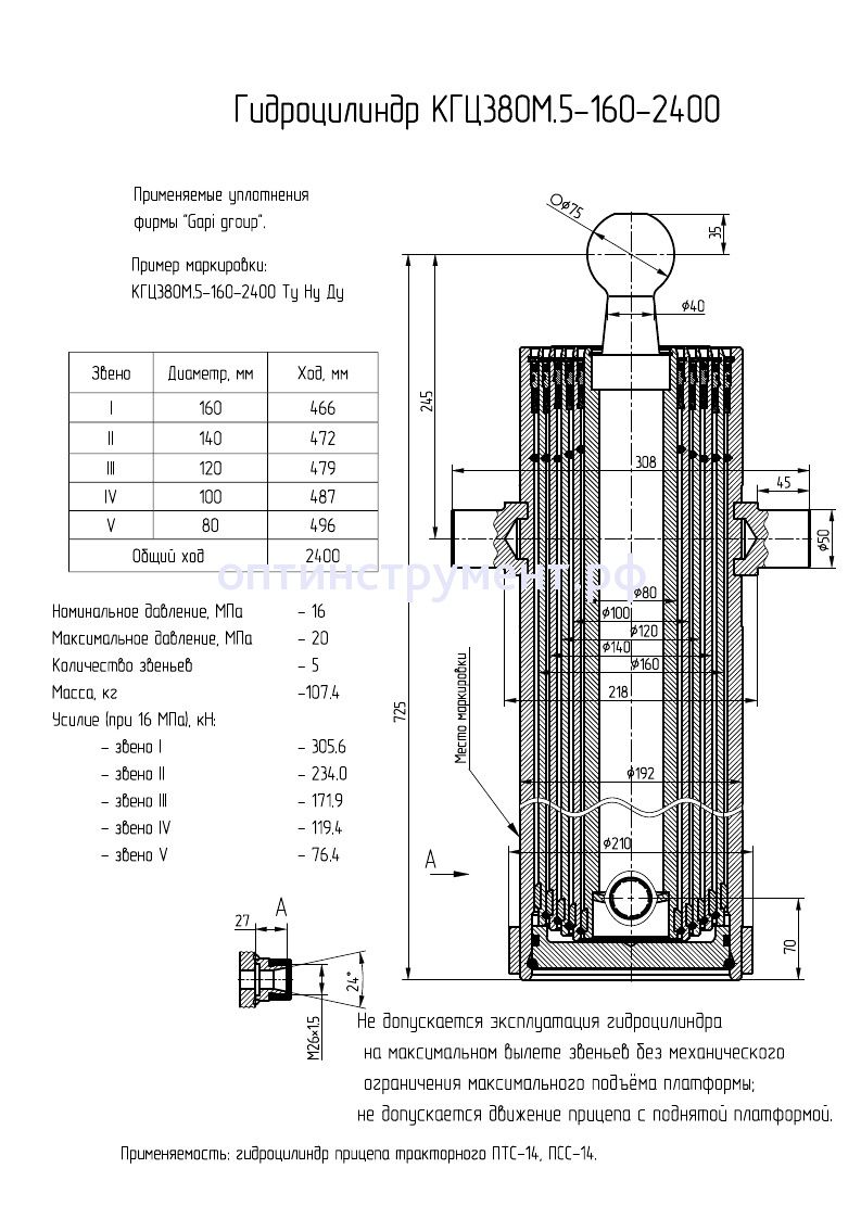 Гидроцилиндр прицепа тракторного КГЦ 380М.5-160-2400 в продаже по цене 69 960 руб. в Интернет-магазине Проф-инструмент с доставкой в Саранске и Мордовии. Звоните по телефону +8 (800) 302-10-51.