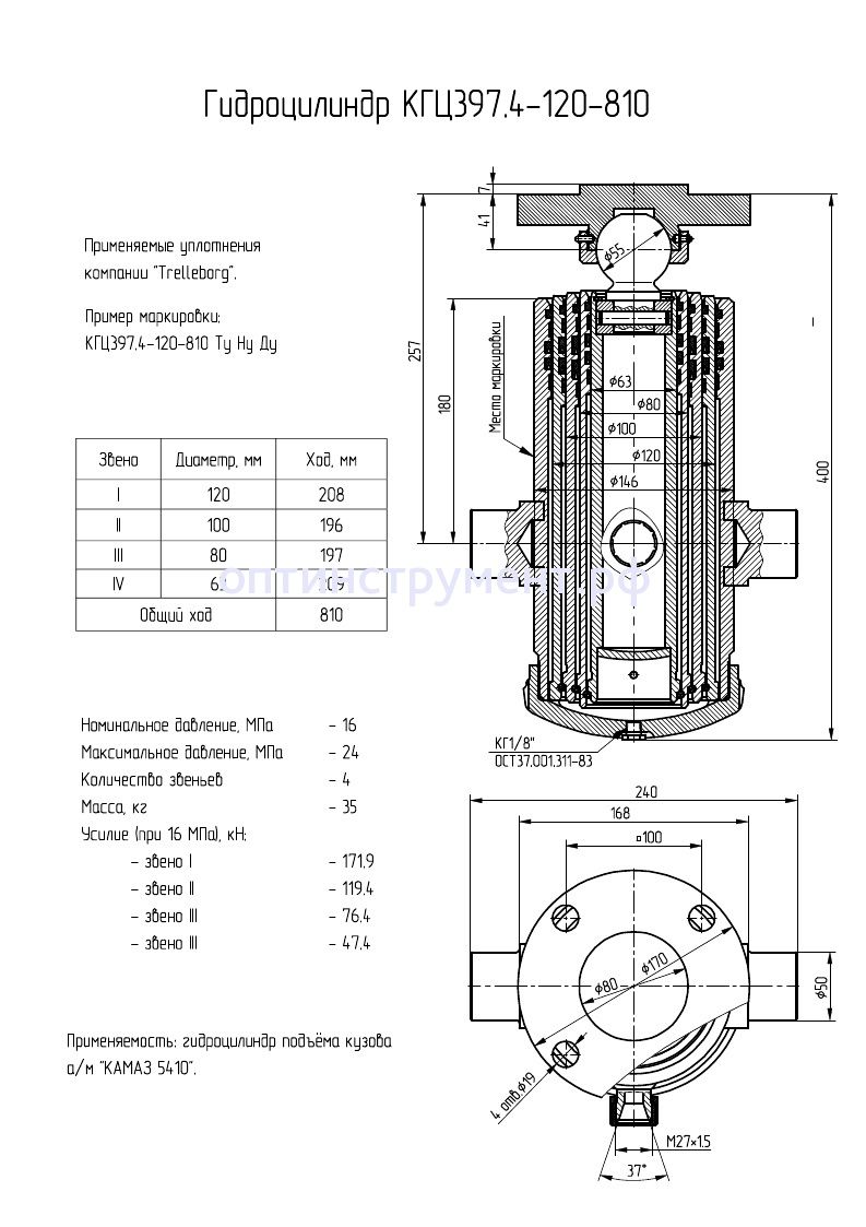 Гидроцилиндр подъёма кузова а/м "КАМАЗ 5410" КГЦ 397.4-120-810 в продаже по цене 0 руб. в Интернет-магазине Проф-инструмент с доставкой в Саранске и Мордовии. Звоните по телефону +8 (800) 302-10-51.