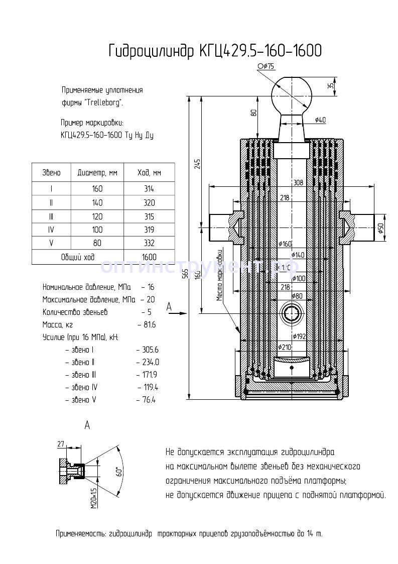 Гидроцилиндр подъема тракторных прицепов грузоподъёмностью до 14 т. КГЦ 429.5-160-1600 в продаже по цене 0 руб. в Интернет-магазине Проф-инструмент с доставкой в Саранске и Мордовии. Звоните по телефону +8 (800) 302-10-51.