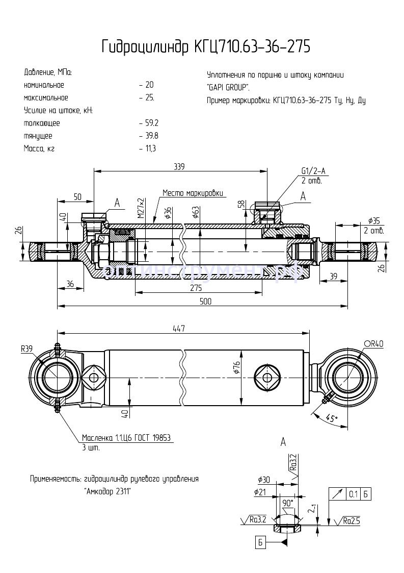 Гидроцилиндр рулевого управления полуприцепа лесовозного "Амкодор 2311" КГЦ 710.63-36-275 в продаже по цене 10 665 руб. в Интернет-магазине Проф-инструмент с доставкой в Саранске и Мордовии. Звоните по телефону +8 (800) 302-10-51.