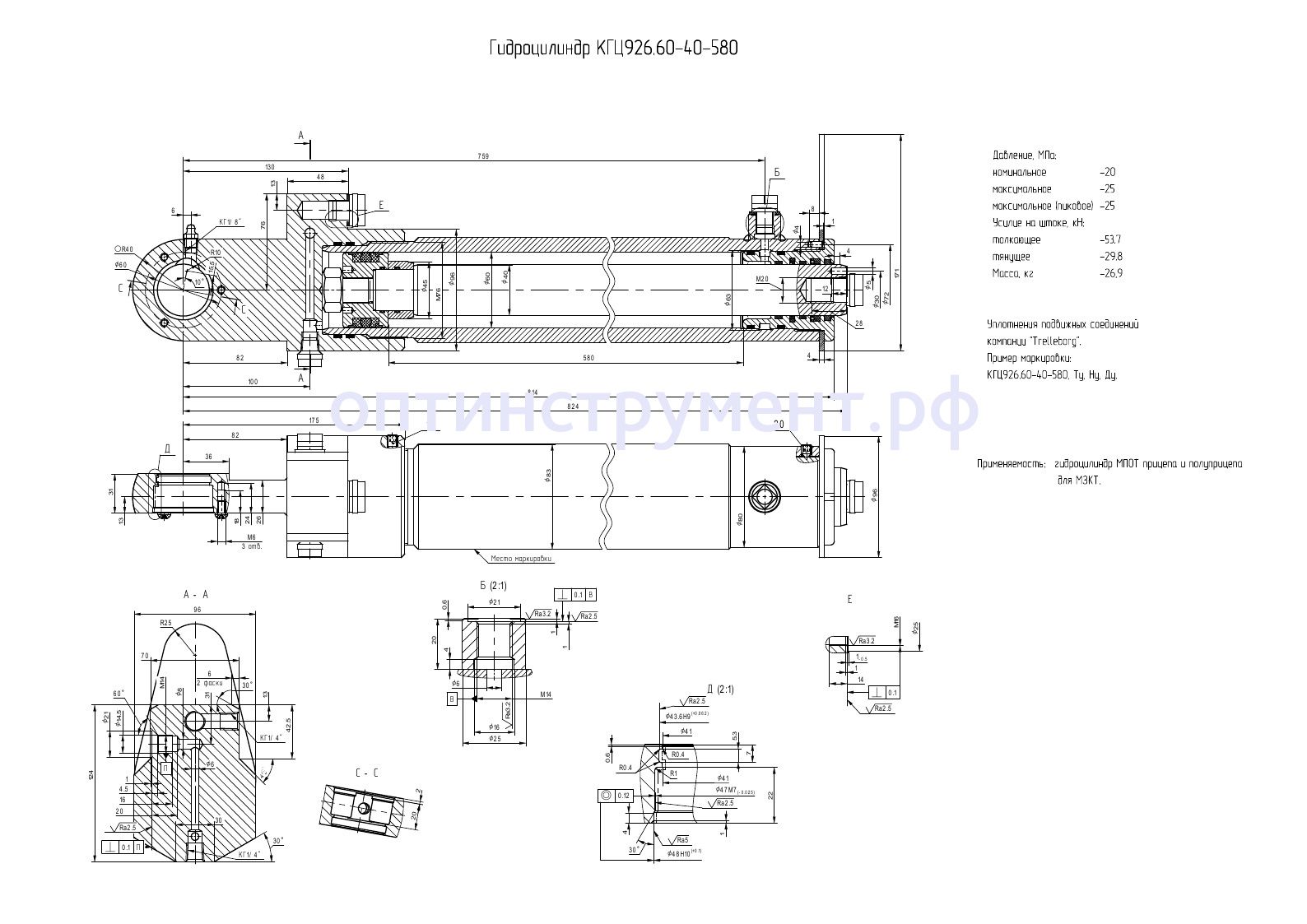Гидроцилиндр МПОТ прицепа и полуприцепа для "МЗКТ" КГЦ 926.60-40-580 в продаже по цене 0 руб. в Интернет-магазине Проф-инструмент с доставкой в Саранске и Мордовии. Звоните по телефону +8 (800) 302-10-51.