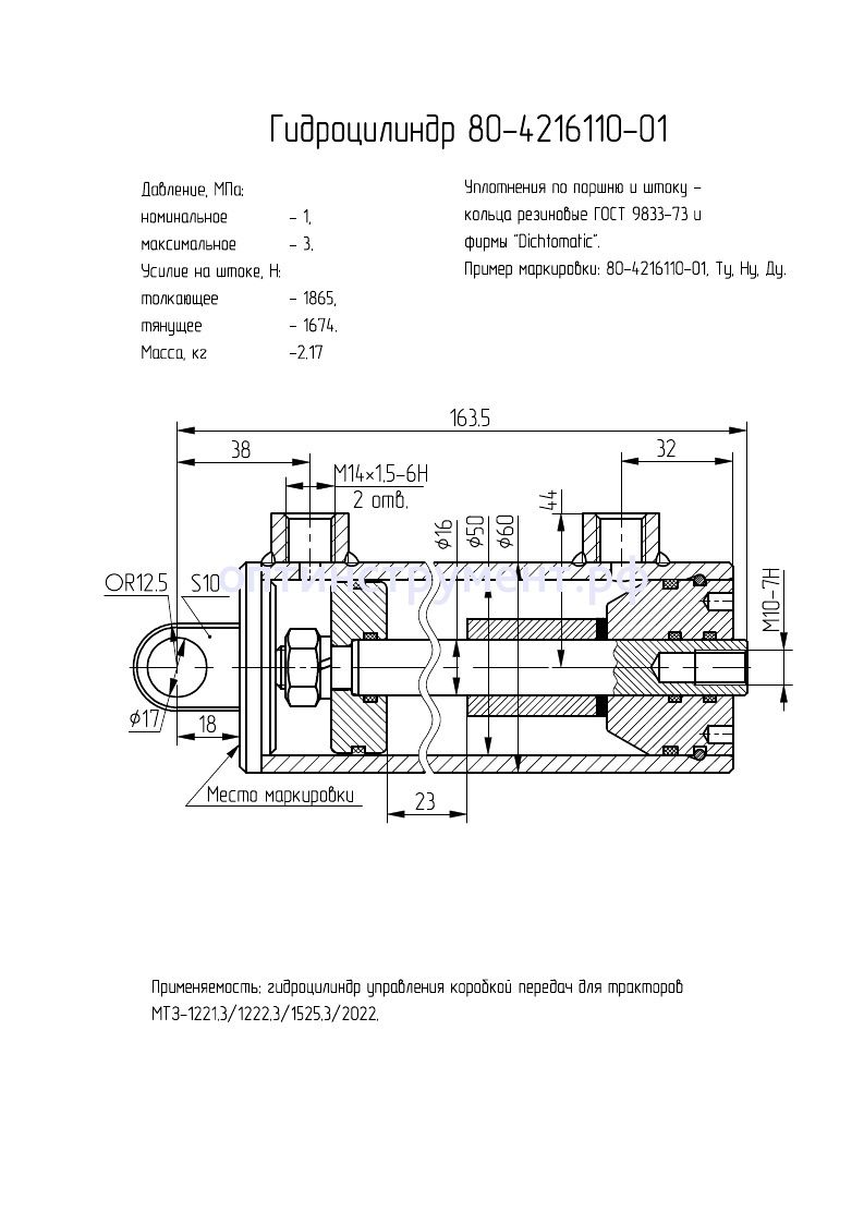 Гидроцилиндр управления коробкой передач для трактора "МТЗ" 80-4216110-01 в продаже по цене 3 000 руб. в Интернет-магазине Проф-инструмент с доставкой в Саранске и Мордовии. Звоните по телефону +8 (800) 302-10-51.
