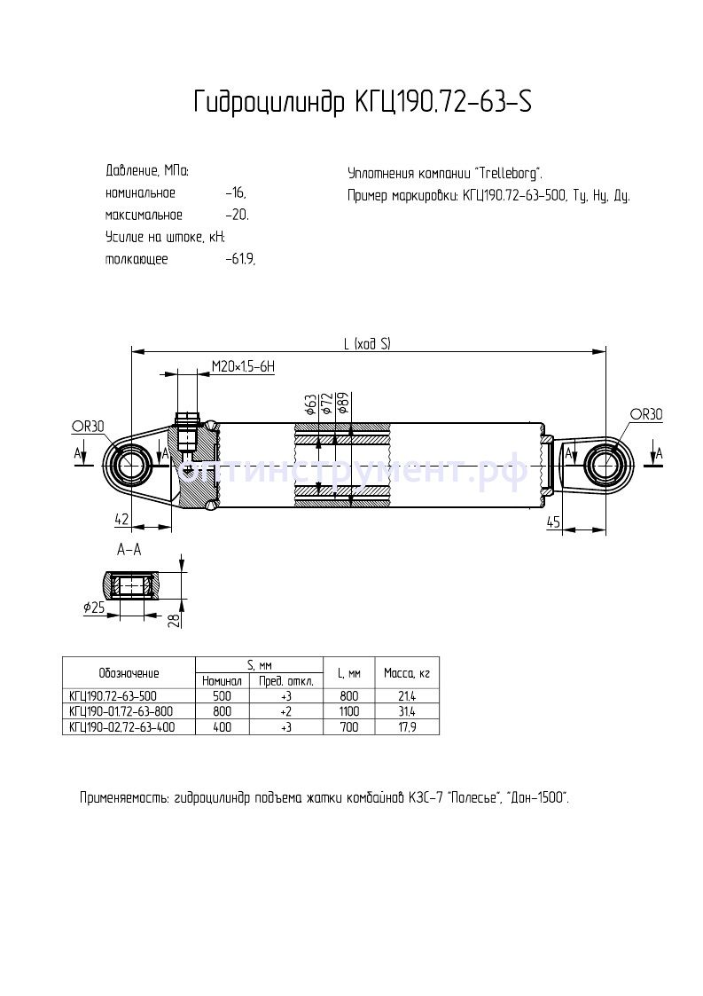 Гидроцилиндр подъема жатки комбайнов КГЦ 190.72-63-500 в продаже по цене 15 315 руб. в Интернет-магазине Проф-инструмент с доставкой в Саранске и Мордовии. Звоните по телефону +8 (800) 302-10-51.