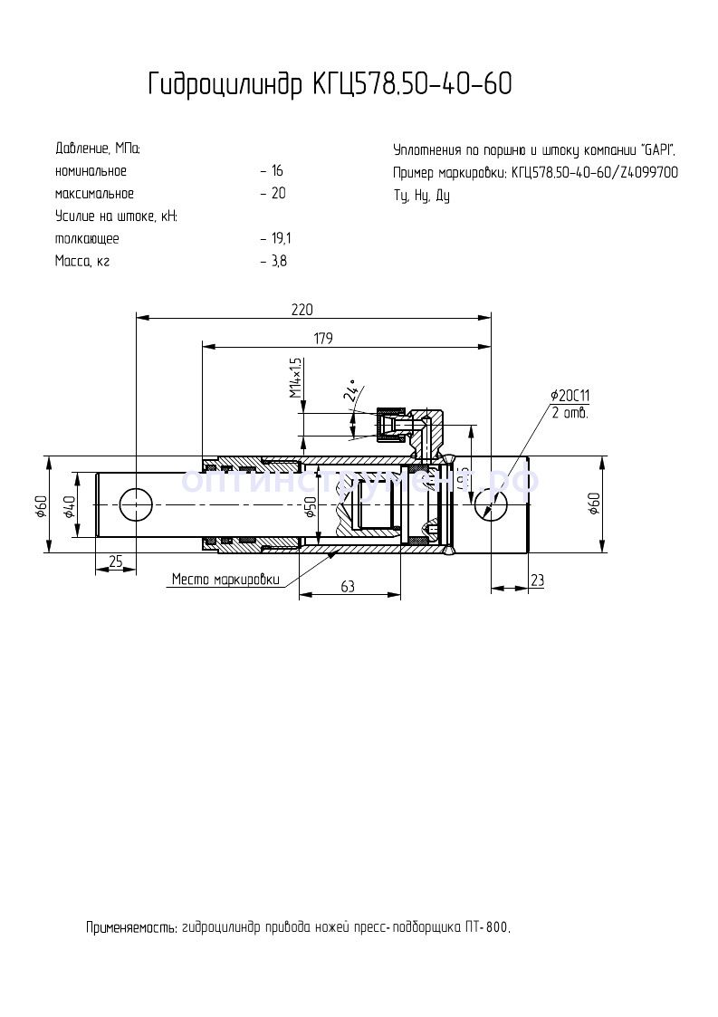 Гидроцилиндр привода ножей пресс-подборщика (ПТ-800) КГЦ 578.50-40-60 в продаже по цене 4 470 руб. в Интернет-магазине Проф-инструмент с доставкой в Саранске и Мордовии. Звоните по телефону +8 (800) 302-10-51.