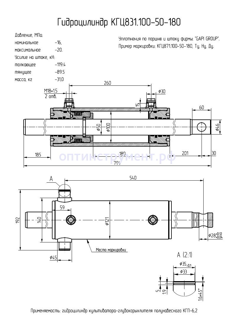 Гидроцилиндр культиватора-глубокорыхлителя полунавесного "КГП-6,2" КГЦ 831.100-50-180 в продаже по цене 22 620 руб. в Интернет-магазине Проф-инструмент с доставкой в Саранске и Мордовии. Звоните по телефону +8 (800) 302-10-51.