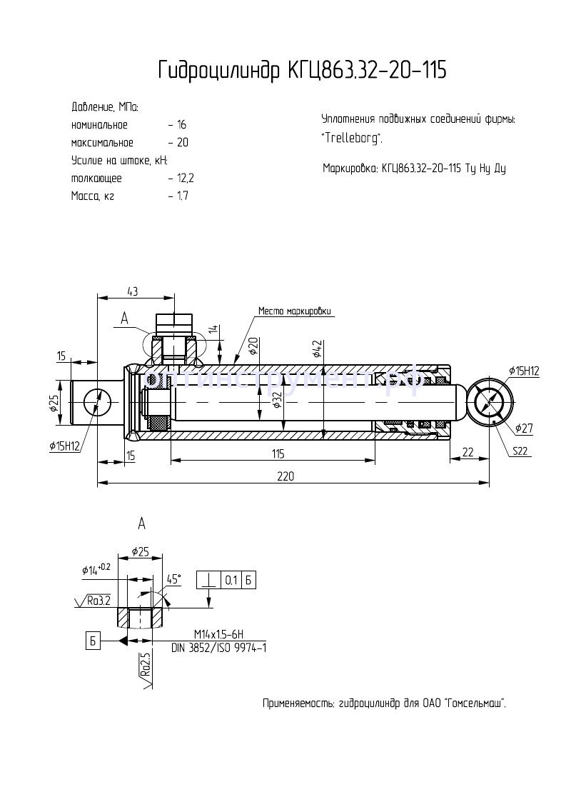 Гидроцилиндр КГЦ 863.32-20-115 в продаже по цене 0 руб. в Интернет-магазине Проф-инструмент с доставкой в Саранске и Мордовии. Звоните по телефону +8 (800) 302-10-51.