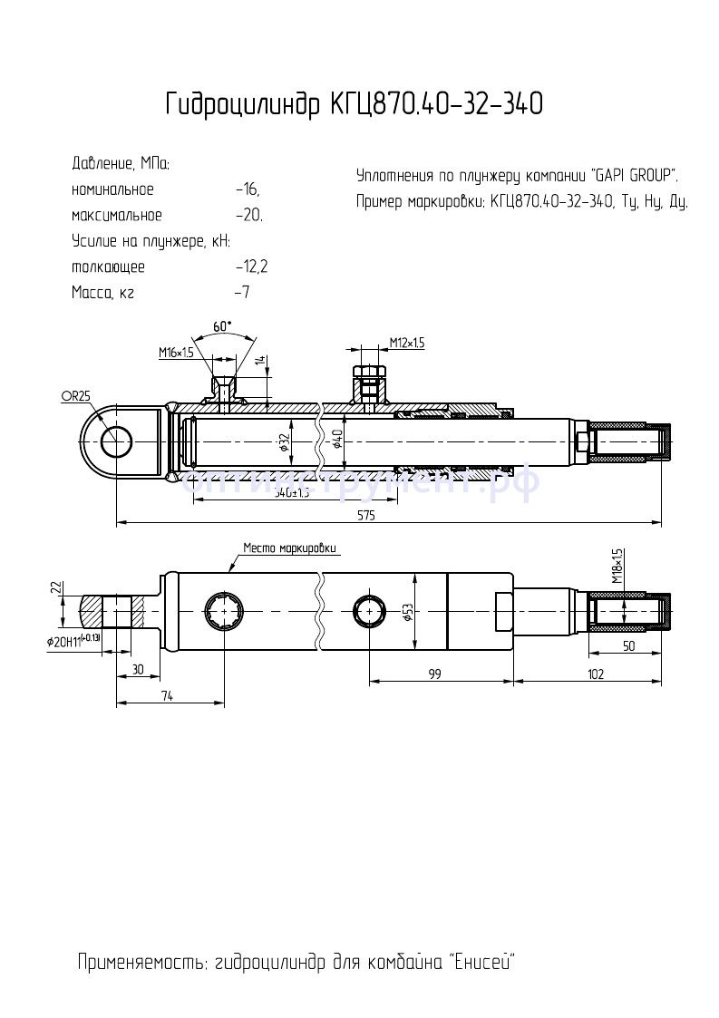 Гидроцилиндр комбайна "Енисей" КГЦ 870.40-32-340 в продаже по цене 0 руб. в Интернет-магазине Проф-инструмент с доставкой в Саранске и Мордовии. Звоните по телефону +8 (800) 302-10-51.