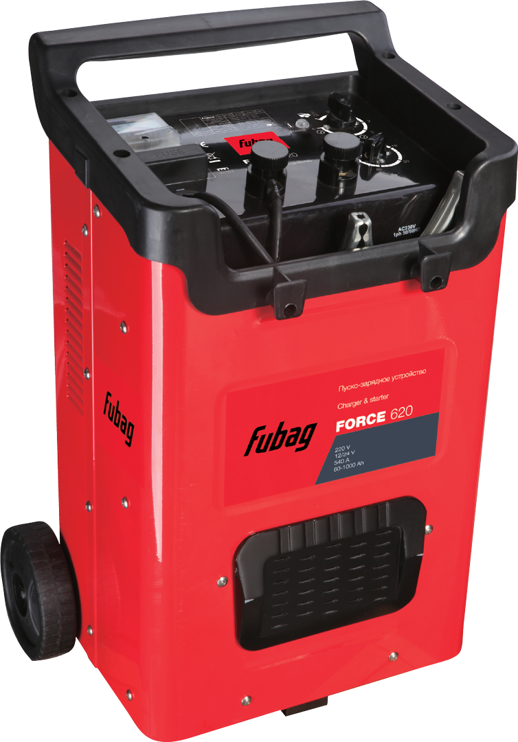 Пуско-зарядное устройство Fubag FORCE 620 предназначено для зарядки автомобильных кислотных аккумуляторов. Устройство может восстановить полностью разряженную аккумуляторную батарею. При помощи устройства можно быстро зарядить севший аккумулятор до степени, когда станет возможен запуск двигателя от аккумулятора.